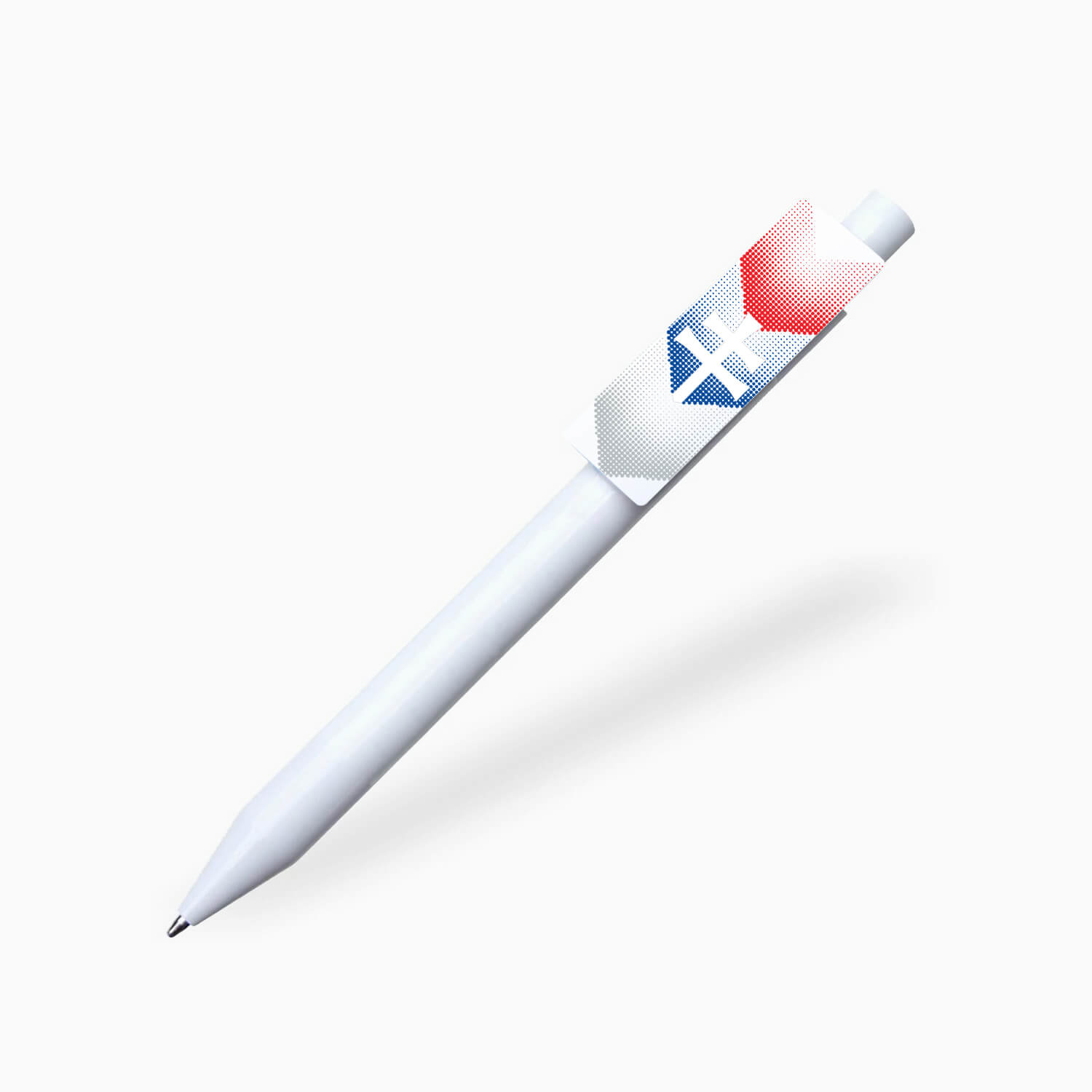 Guľôčkové pero pre všetkých, čo majú radi Slovensko – biele pero s modrou náplňou, potlač Slovenský znak a farby našej trikolóry.