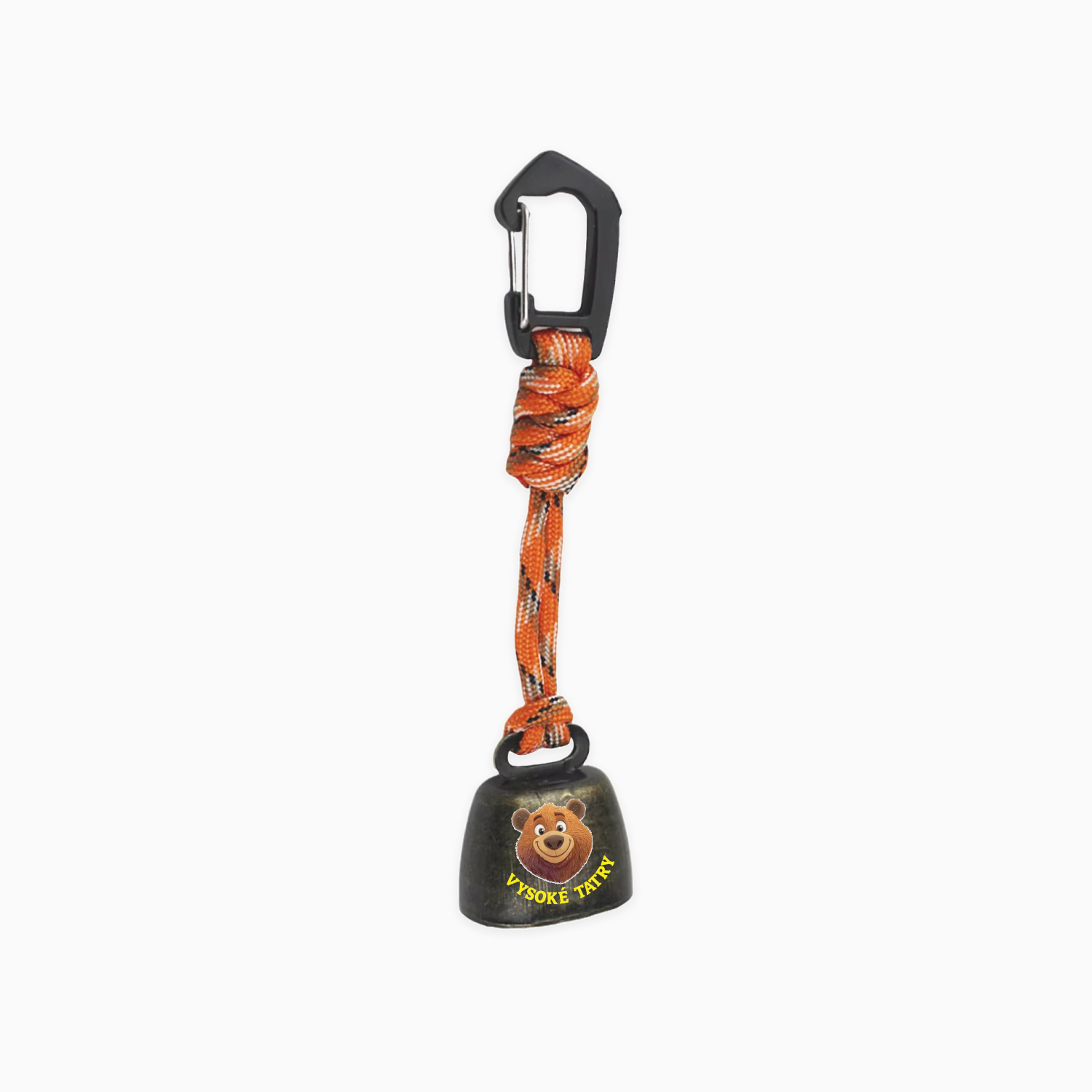 Praktická rolnička na medvede s pevným oranžovým paracordom a veselou potlačou medveďa a nápisom Vysoké Tatry. Slúži ako jednoduchá prevencia pred neželaným stretnutím so zverou pri turistike. Vďaka zvuku pri pohybe upozorňuje medvede aj iné divé zvieratá na vašu prítomnosť v lese.